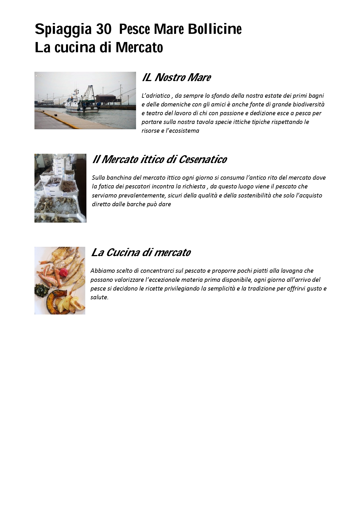 Abbiamo scelto di concentrarci sul pescato e proporre pochi piatti alla lavagna che possano valorizzare l’eccezionale materia prima disponibile, ogni giorno all’arrivo del pesce si decidono le ricette privilegiando la semplicità e la tradizione per offrirvi gusto e salute.
